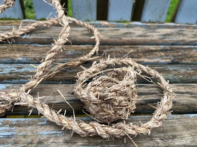Using foraged natural material, including wild grasses, leaves fallen from municipal planting or collected waste materials, I use ancient basket making techniques to make vessels, cordage and nets. Entwined in this act of making and handling of raw materials is the experience of connecting to the elemental qualities of material and place.